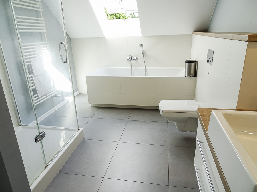 II POZIOM 31,91 m2: sypialnia 21,92 m2, panele podłogowe, szafa garderobiana w stałej zabudowie, łazienka 9,99 m2 z wanną, oddzielną kabiną prysznicową, 2 umywalki, WC razem.