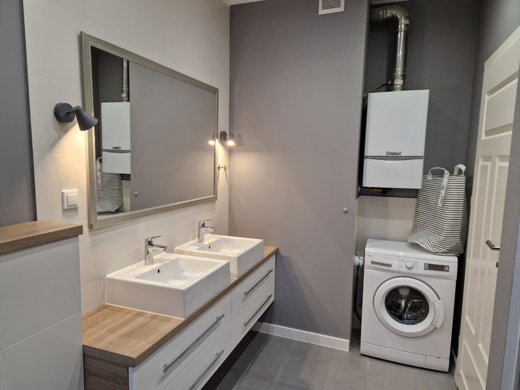 Ogrzewanie gazowe indywidualne, piec gazowy VAILLANT w łazience górnej.