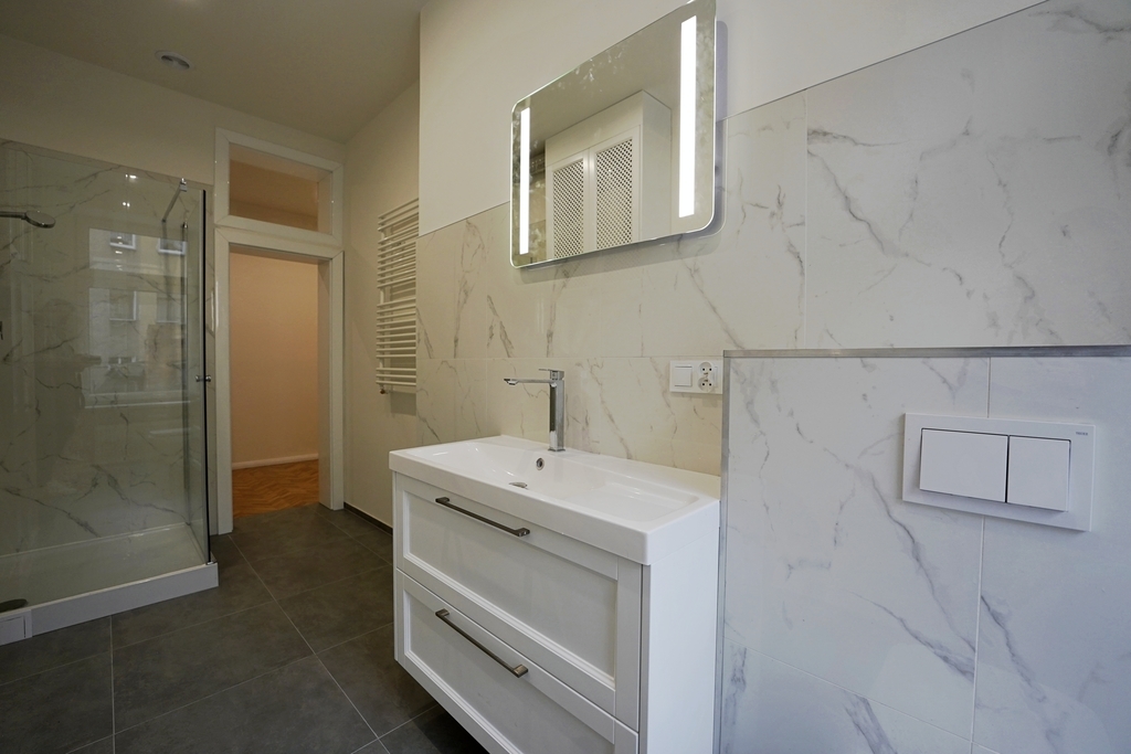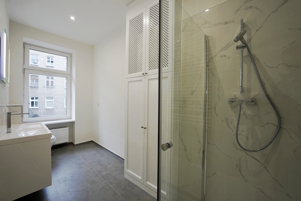 - nowa łazienka z eleganckim wykończeniem i wygodnym prysznicem