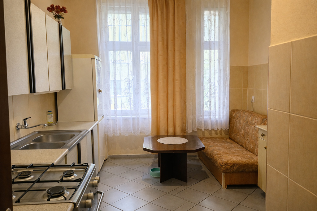 Ogrzewanie zapewniają piece kaflowe, a ciepła woda pochodzi z bojlera.