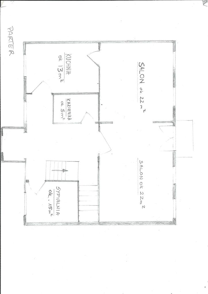 Parter o powierzchni użytkowej ok. 80 m² obejmuje jasną kuchnię, łazienkę z WC (wyposażoną w wannę, umywalkę, glazurę i terakotę), sypialnię oraz przestronny salon o powierzchni ok. 45 m² z kominkiem z płaszczem wodnym, który oprócz walorów estetycznych pełni funkcję centralnego ogrzewania. Z salonu znajduje się bezpośrednie wyjście na zadaszony taras i do ogrodu.