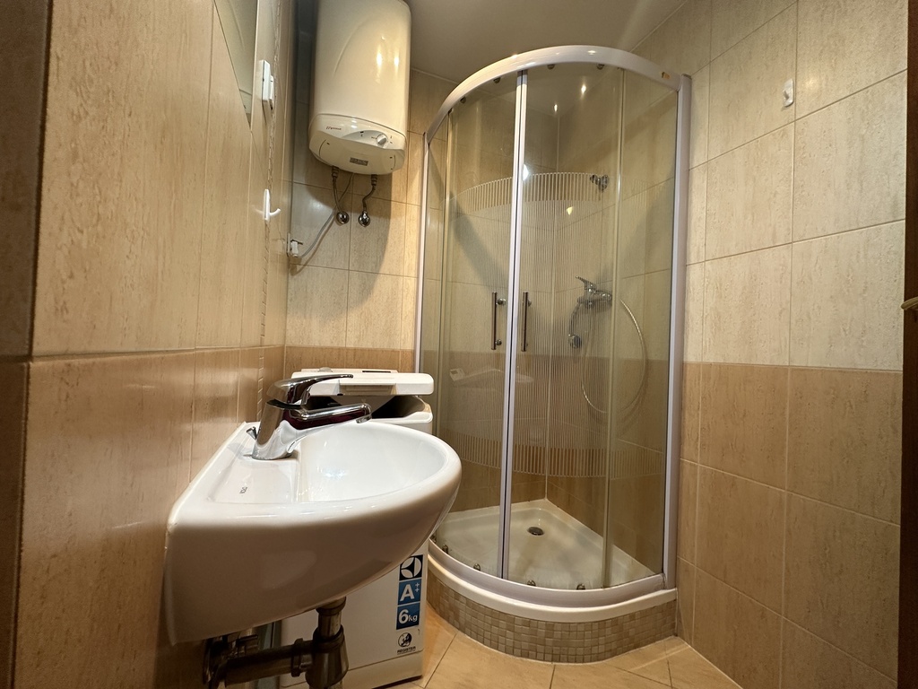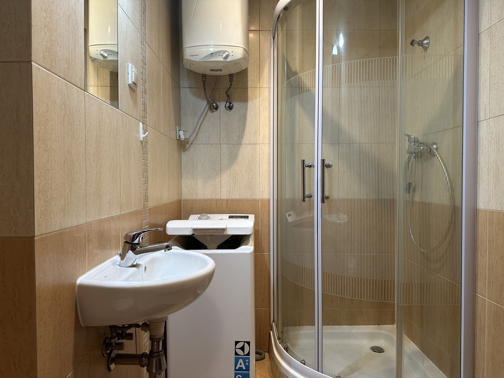 Na wyposażeniu lodówka, pralka, płyta elektryczna, bojler elektryczny, szafki.