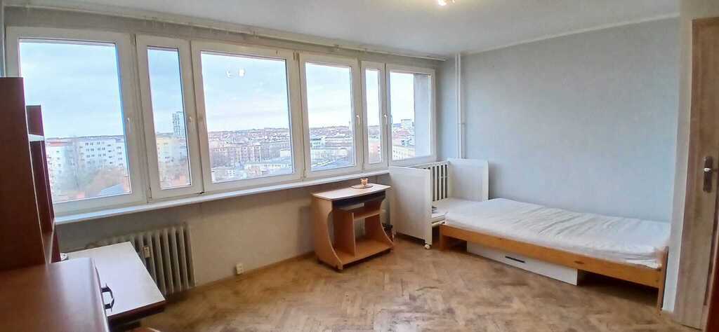 Na sprzedaż kawalerka 29 m² na 9. piętrze w 10-piętrowym bloku z windą w dobrej lokalizacji. Mieszkanie składa się z ustawnego pokoju, widnej kuchni i łazienki z prysznicem. Wymaga odświeżenia lub lekkiego remontu, dzięki czemu można je wykończyć pod własne potrzeby lub pod inwestycję. Do mieszkania przynależy piwnica.