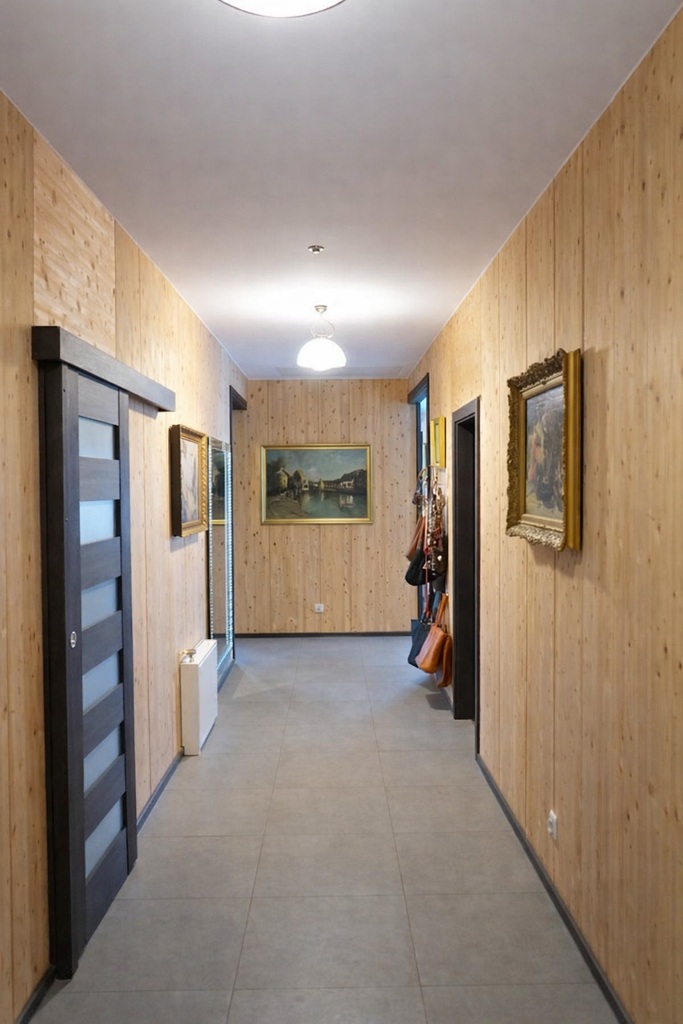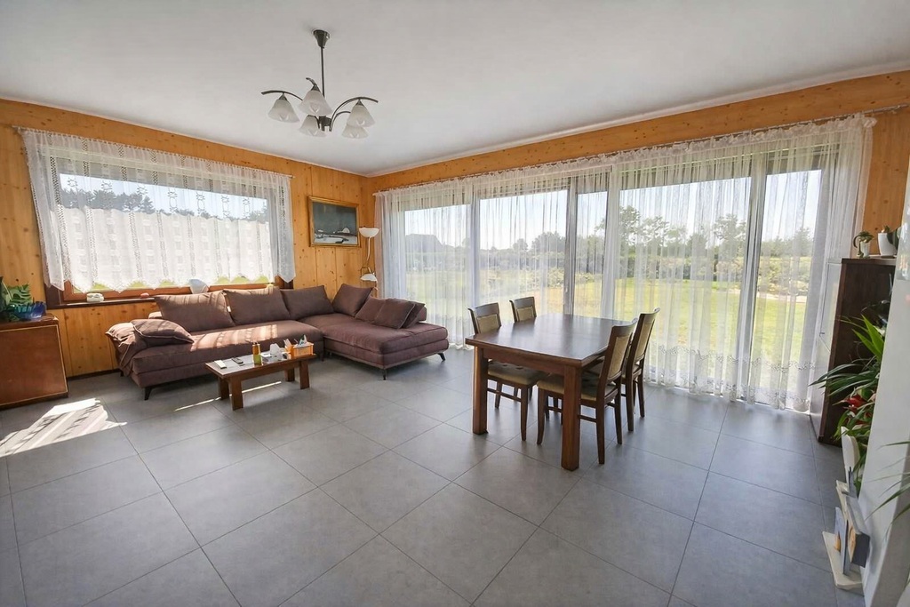 Wnętrza wykończone wysokiej jakości materiałami – gres w kuchni i łazience, panele w pozostałych pomieszczeniach. W całym domu rozprowadzona instalacja alarmowa. Poddasze użytkowe (70 m²), ocieplony strop, idealne do adaptacji na dodatkowe pomieszczenia mieszkalne.