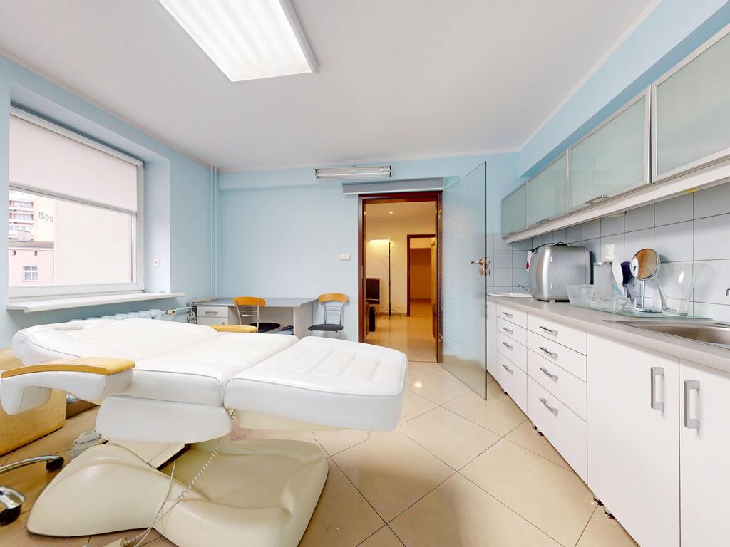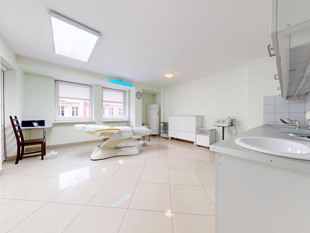 Lokal jest ładnie i funkcjonalnie urządzony, wykończony z dbałością o detale — na podłogach kafle, ściany wykończone gładziami, estetyczna stolarka drzwiowa. W gabinetach