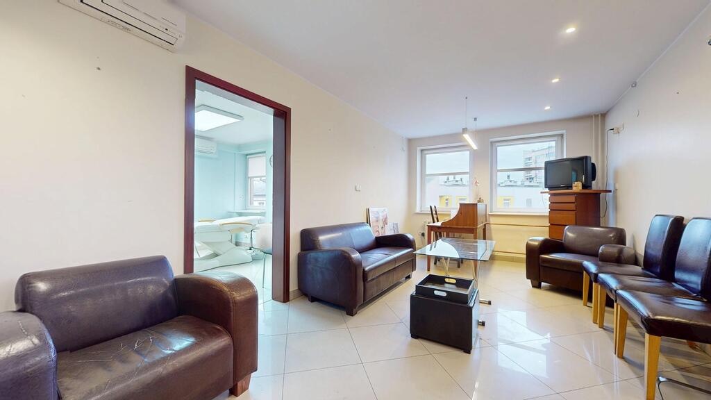 Mieszkanie do tej pory było użytkowane jako gabinety kosmetyczne, stęd widoczny wystrój. Jest ładnie i funkcjonalnie urządzone, wykończone z dbałością o detale — na podłogach kafle, ściany wykończone gładziami, estetyczna stolarka drzwiowa.