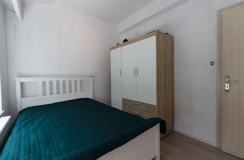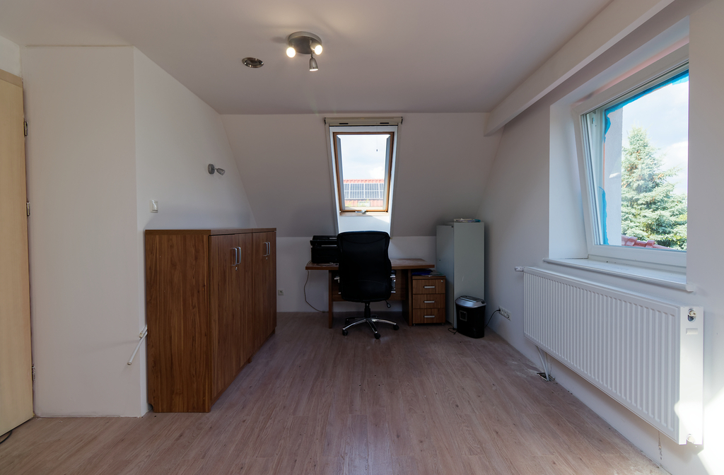 Druga sypialnia, o powierzchni 18 m², pełni obecnie funkcję biura, jednak z łatwością może zostać zaadaptowana jako pokój dziecięcy, gościnny lub dodatkowa sypialnia – w zależności od potrzeb domowników.