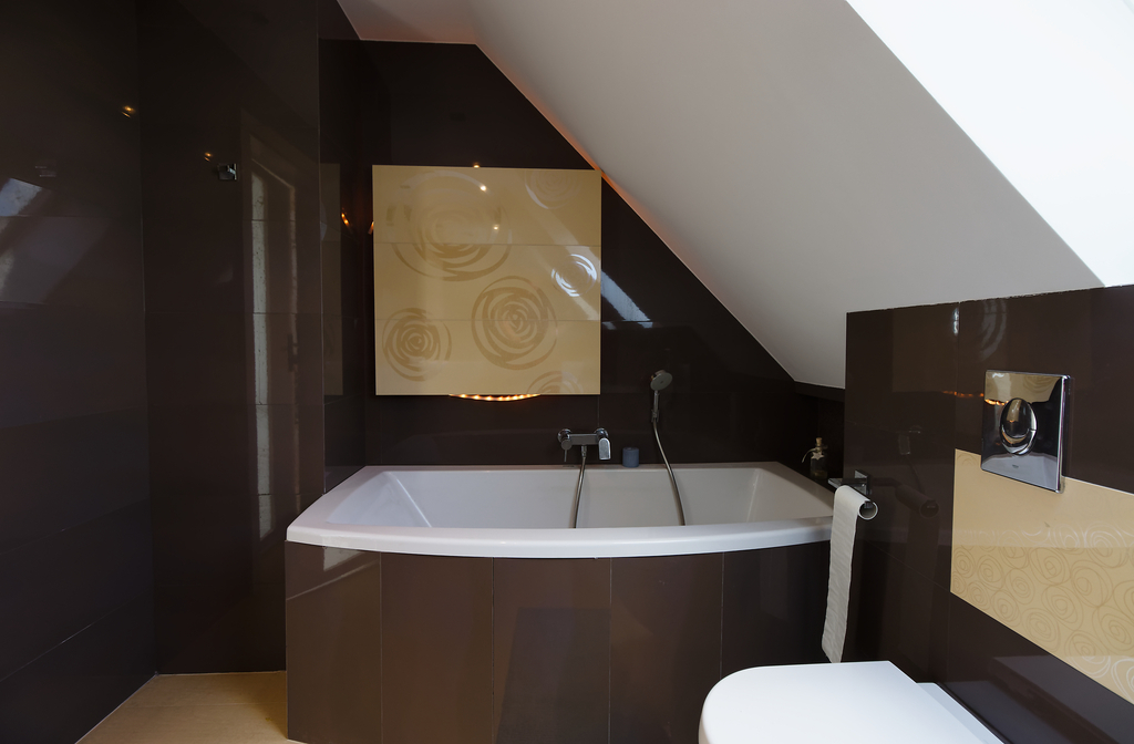 Łazienka na piętrze — znajdziesz tu wygodną wannę oraz dwie umywalki, które ułatwiają poranne przygotowania i wieczorne wyciszenie.