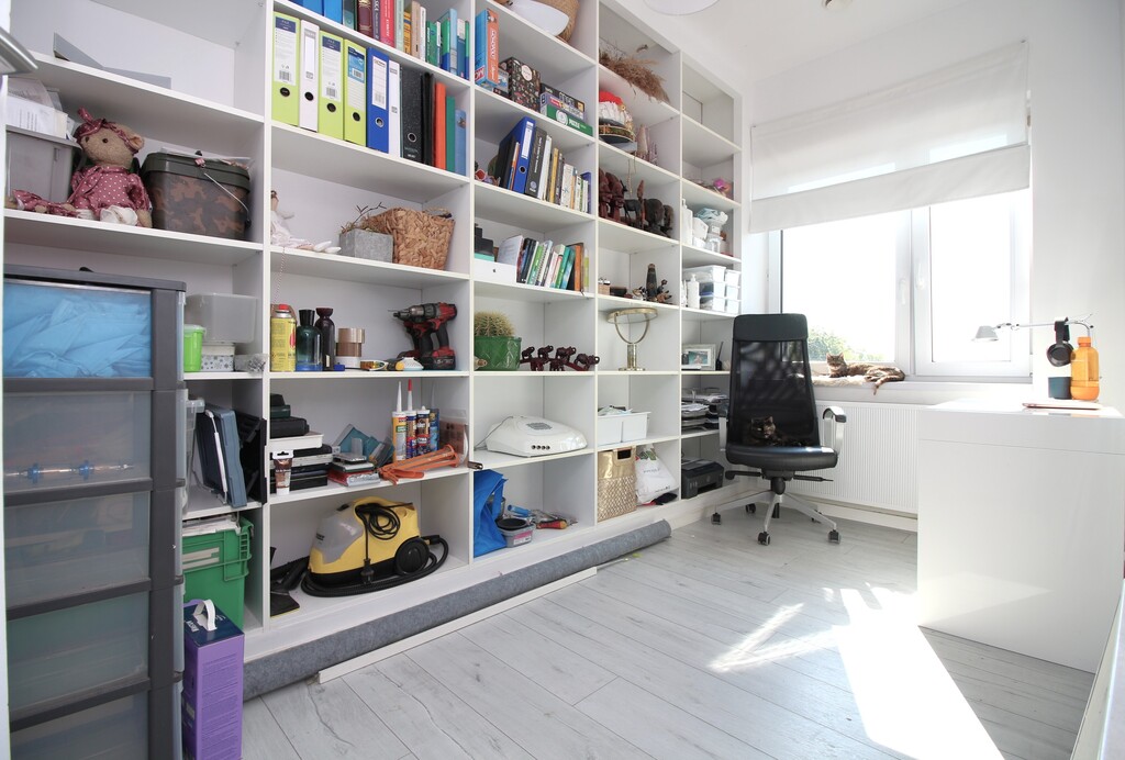 - pokój, który pełni teraz funkcje biura, ale bez problemu może pełnić funkcję dodatkowej sypialni