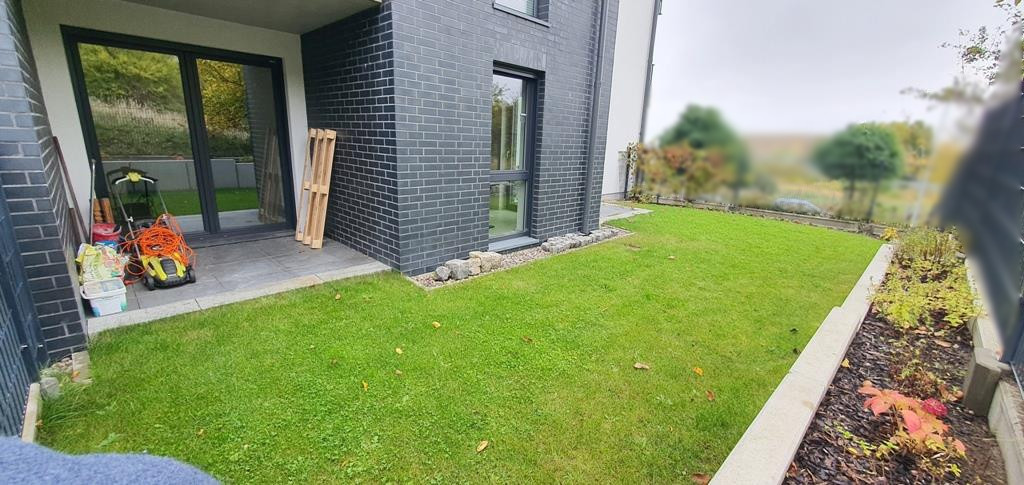 Ze wszystkich trzech pokoi można wyjść na prywatny, przynależny do mieszkania ogród i cieszyć się słońcem na zadbanej trawie.
