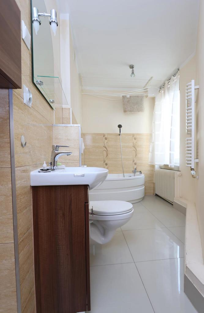 - łazienka - wanna, WC, umywalka z szafką, szafka wisząca,
