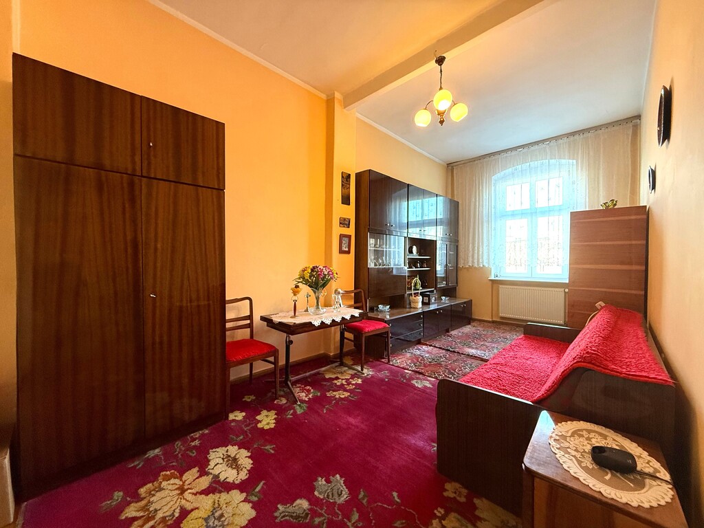 Mieszkanie do remontu, na podłodze deski. Okna pcv, drzwi drewniane. W jednym z pokoi znajduje się działający piec kaflowy, w dobrym stanie wizualnym. Ogrzewanie i ciepła woda z gazowego pieca dwuobiegowego. Czynsz ok. 365zł (1 osoba) + ok. 280zł/m-c + prąd wg zużycia