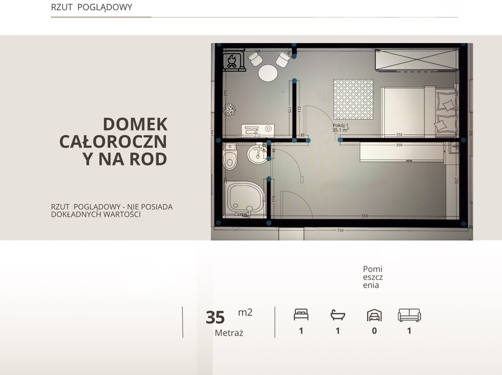 Domek przystosowany do całorocznego użytkowania posiada stały dostęp do prądu oraz wody