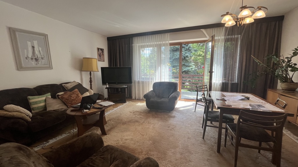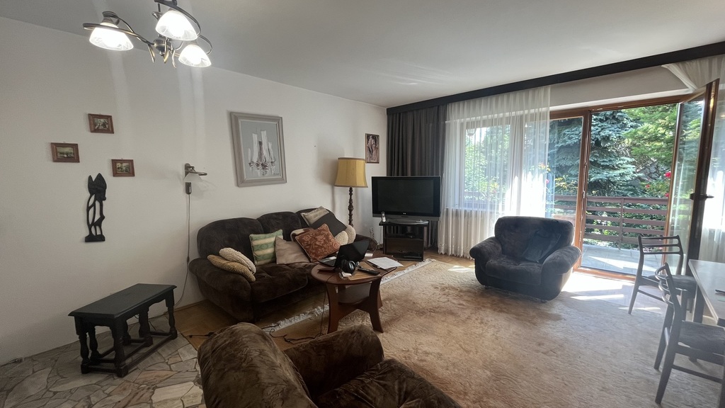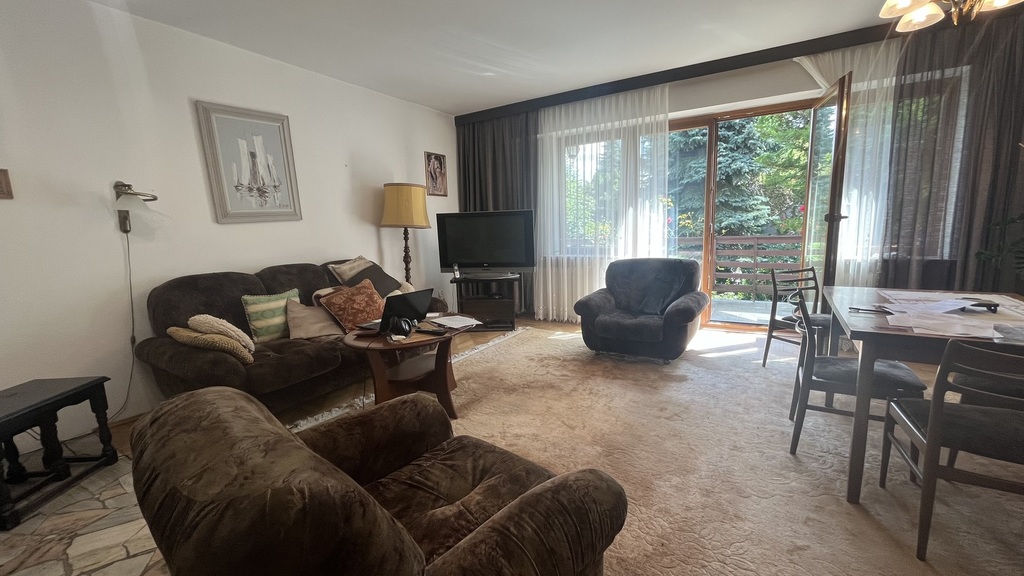 Parter znajduje przestronny salon z wyjściem na duży słoneczny taras z widokiem na ogród.