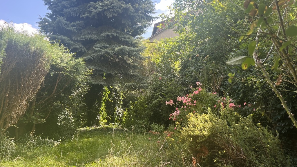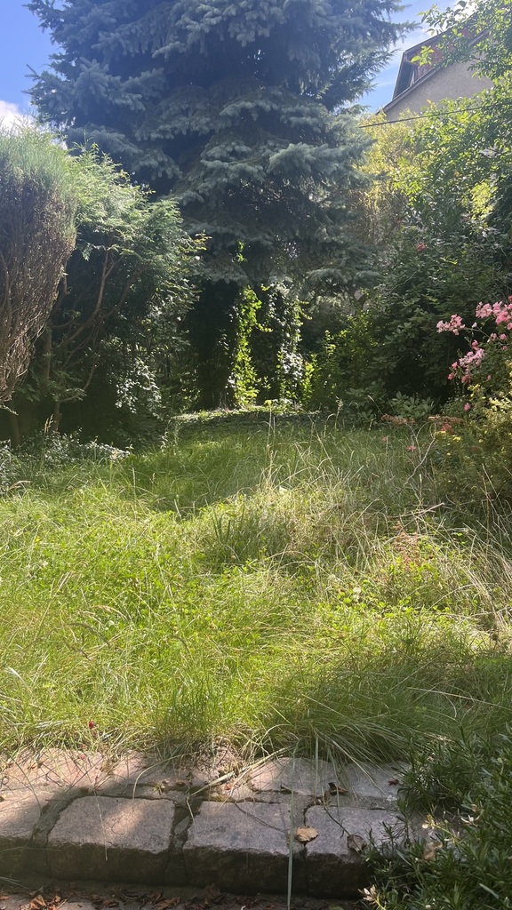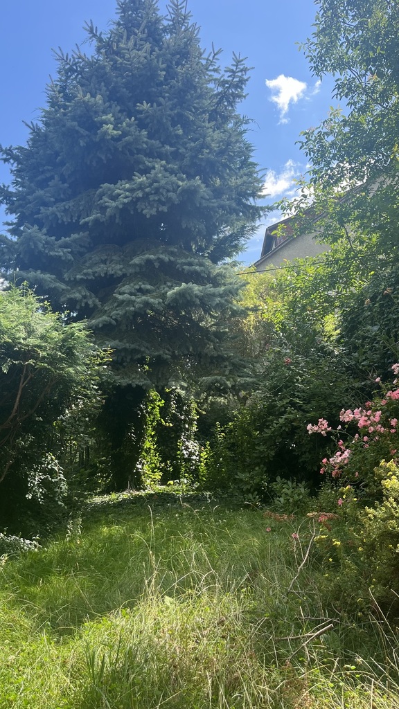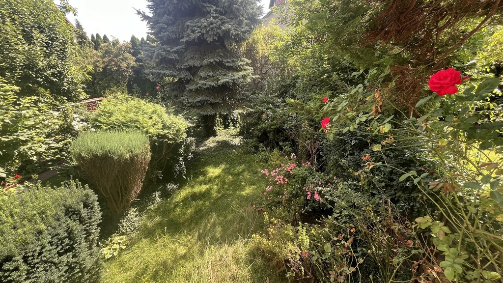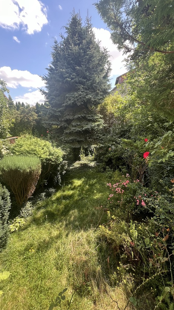 Na poddaszu przestronny pokój z widokiem na ogród oraz dwa pomieszczenia do zagospodarowania np. na pokoje .