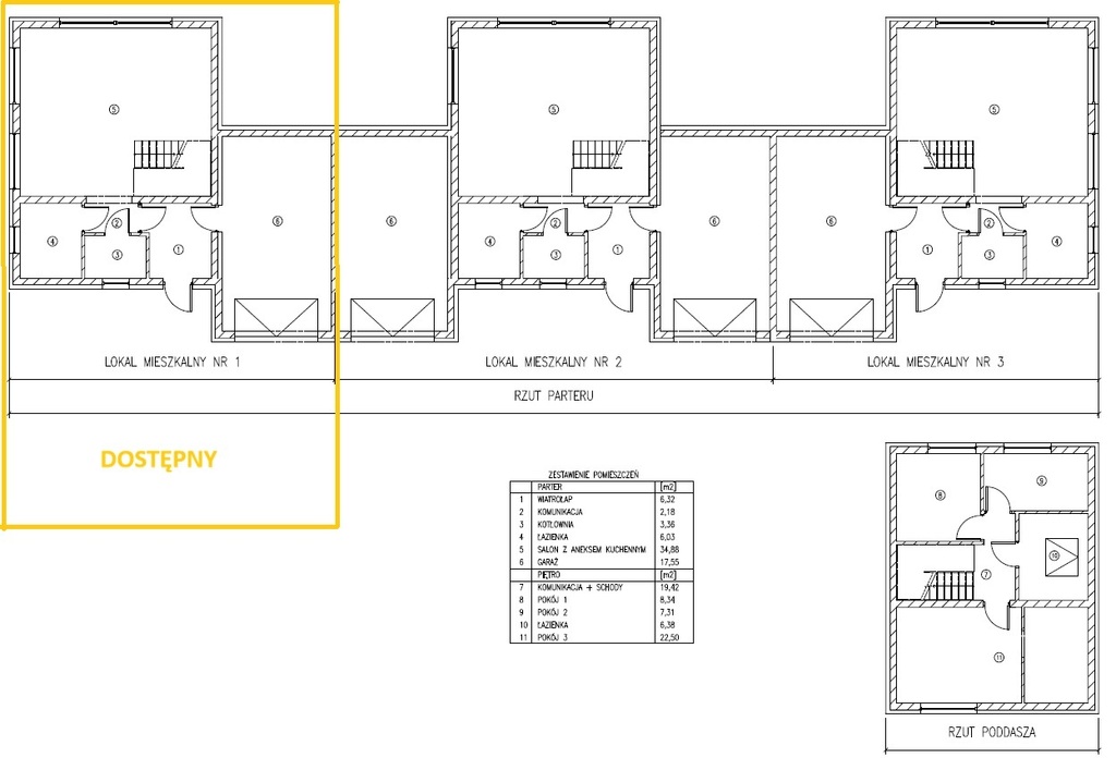 RAZEM: 52,76 m2 + garaż 17,55 m2 =70,32 m2