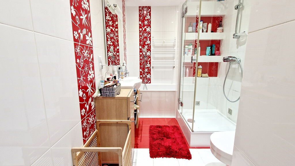 • łazienka na piętrze wyposażona zarówno w wannę, jak i prysznic,