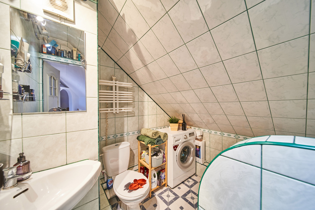 Nieruchomość położona jest na V piętrze, VI kondygnacyjnego bloku z 1999 roku. Okna połaciowe. Mieszkanie ze skosami - adaptacja poddasza. W okolicy budynku liczne miejsca postojowe. Ogrzewanie centralne miejskie, woda z sieci miejskiej. Mieszkanie w stanie - do drobnego remontu. Instalacja elektryczna 3 fazowa miedziana.