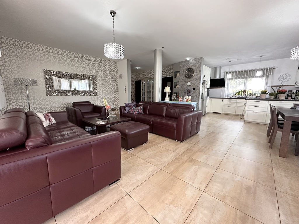 • przestronny salon z kominkiem i aneksem kuchennym,