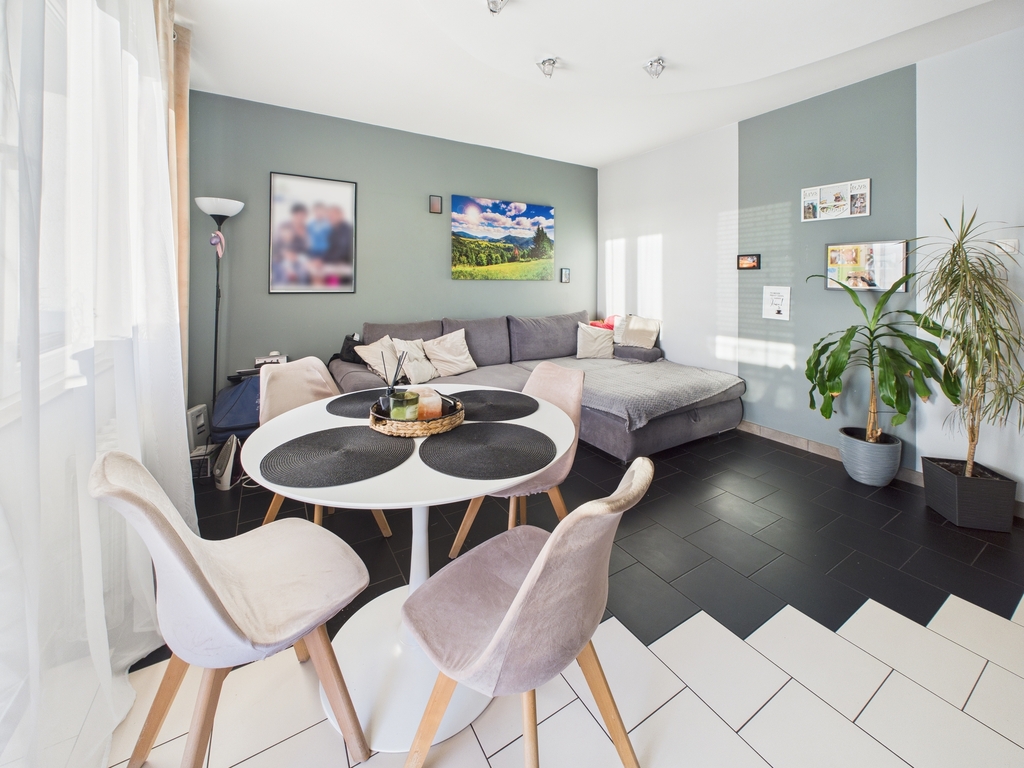 - Jasny salon z bezpośrednim wyjściem na balkon