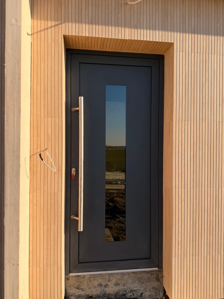 Okna 3-szybowe w kolorze antracyt firmy Rehau.