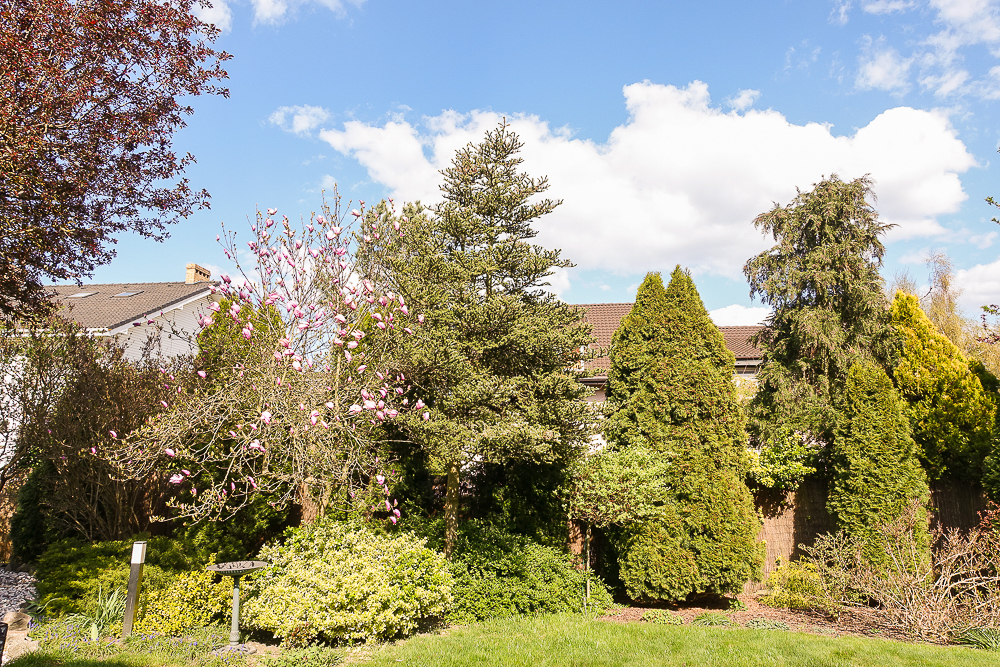 Dom wolno stojący w klimatycznym, malowniczym, spokojnym otoczeniu. Nieruchomość otacza bardzo zadbany ogród z bogatymi nasadzeniami zapewniającymi prywatność i sprzyjającymi relaksowi. Wśród licznych roślin znajdziemy tu hortensje, rododendrony, róże, szkarłatki, trzmieliny, trawy ozdobne, perukowca, dwie piękne magnolie, piwonie drzewiaste, chiński niezwykle pachnący bez, trzy wierzby Iwa, wiśnię japońska, judaszowca, iglaki, a pośród nich fontanna i miejsce do grillowania oraz miejsce na jacuzzi, haki na dwie huśtawki, mocowanie do telewizora, głośniki na zewnątrz. Możliwość zamieszkania przez rodzinę dwupokoleniową lub prowadzenia działalności w przyziemiu.