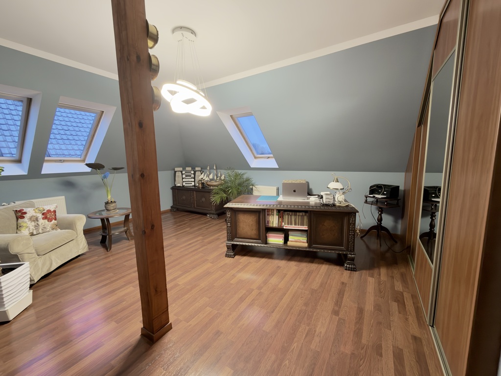 * sypialnia aktualnie wykorzystywana jako gabinet z wejściem na strych 17,25[m2]