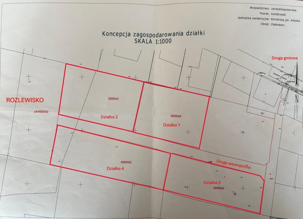 Istnieje możliwość wyboru z 4 działek o powierzchni 3000 m2 - 4000 m2.