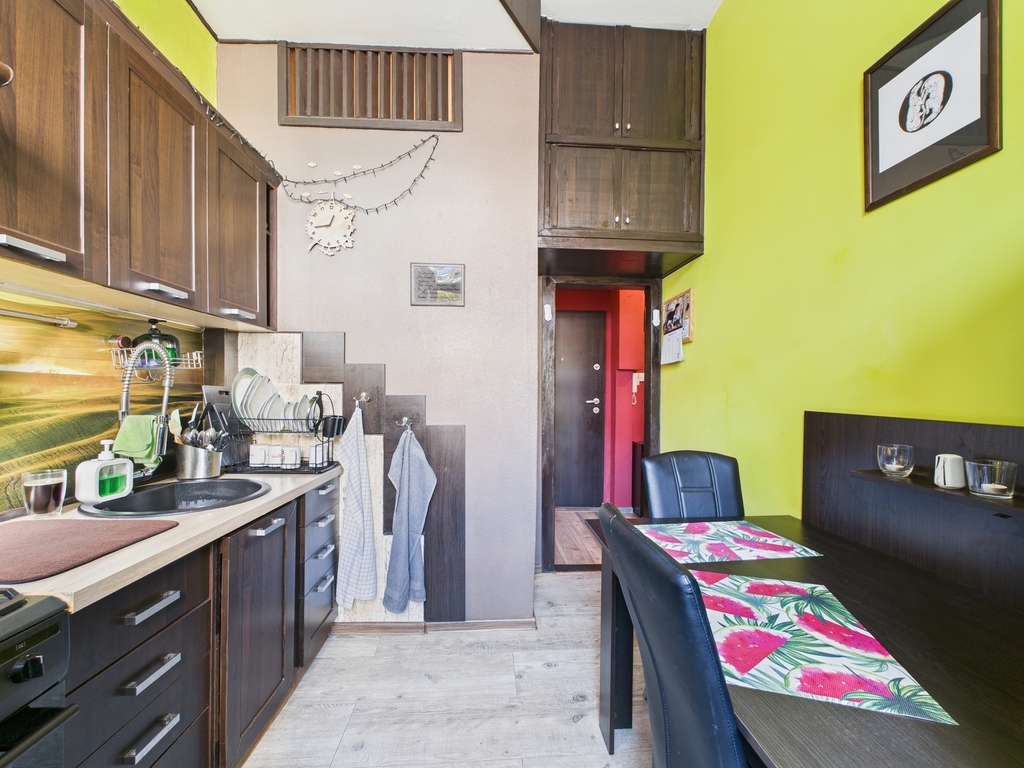 Mieszkanie jest gotowe do zamieszkania. Wyróżnia je ciekawa aranżacja z wykorzystaniem antresoli, dzięki czemu zyskano dodatkową przestrzeń użytkową. Wysokie pomieszczenia i duże okna zapewniają dobre doświetlenie przez cały dzień. Wnętrza utrzymane w zdecydowanych kolorach, co nadaje im indywidualny charakter – przy odświeżeniu z łatwością można nadać im nowy styl.