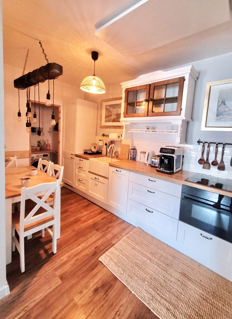 Nowoczesna kuchnia w zabudowie, w pełni wyposażona: