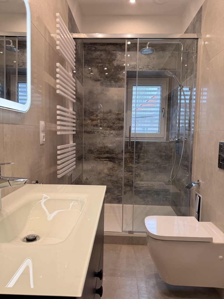 • stylowa łazienka z WC i prysznicem typu walk-in