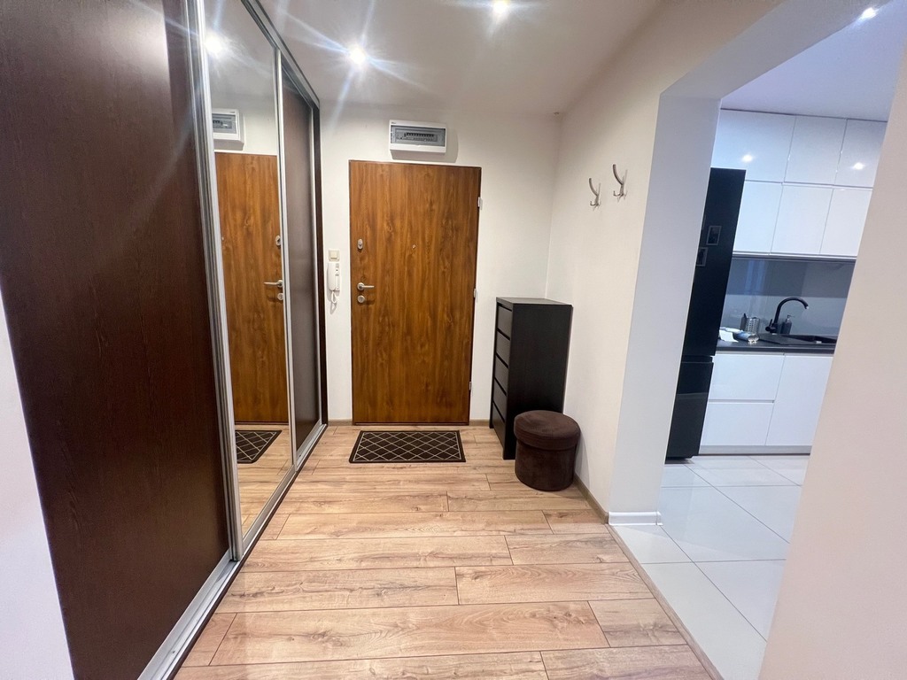 Układ mieszkania daje możliwość wydzielenia dodatkowego pokoju (np. gabinet/sypialnia), co zwiększa jego funkcjonalność.