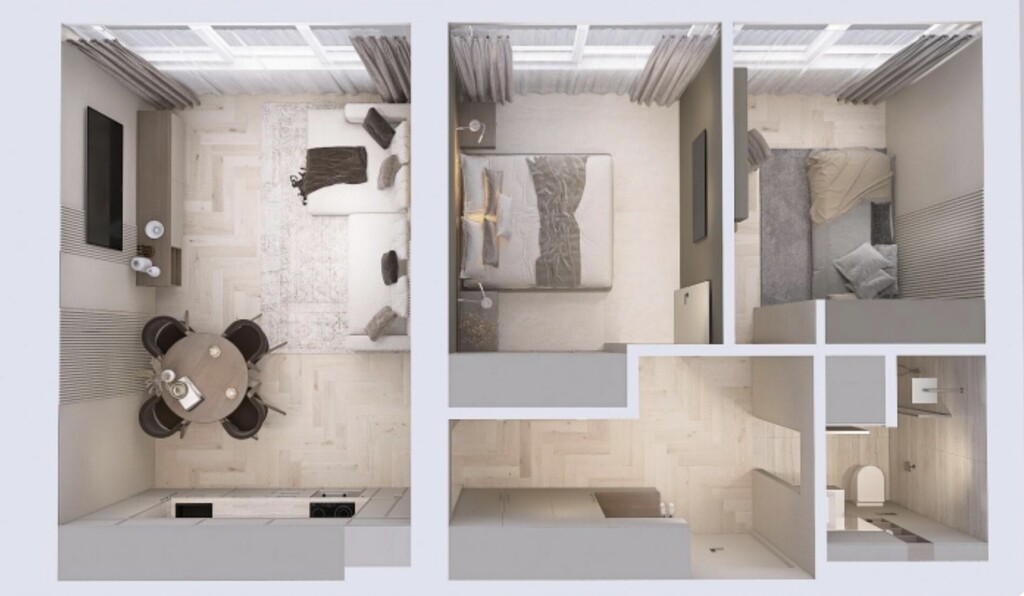2. wydzieloną sypialnię lub możliwość wydzielenia dodatkowego pokoju,