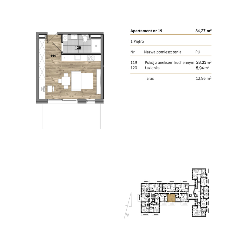 - M.19 | 462 645 zł | 34,27 m² | piętro 1 | 1 pokój