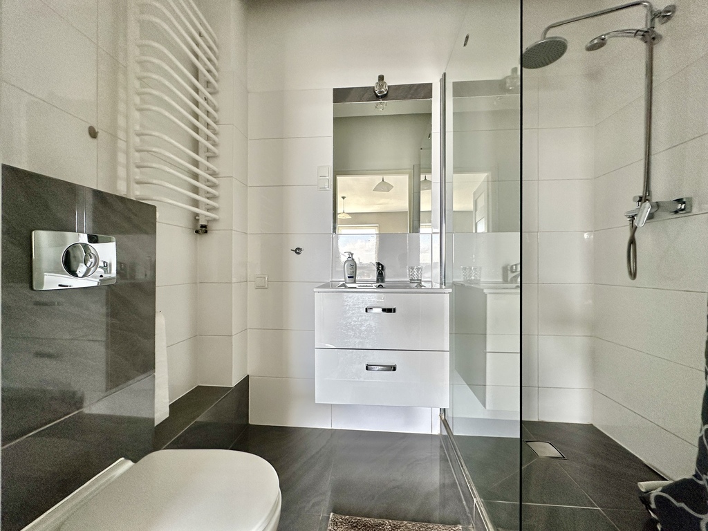 Wnętrze wykończone w dobrym standardzie – gładkie, malowane ściany, na podłogach panele oraz gres. Kuchnia w zabudowie meblowej ze sprzętem AGD: lodówka z zamrażarką, piekarnik elektryczny, płyta grzewcza, pralka, kuchenka mikrofalowa oraz zmywarka. Łazienka i toaleta w glazurze i terakocie. Mieszkanie jest w pełni umeblowane i gotowe do zamieszkania.
