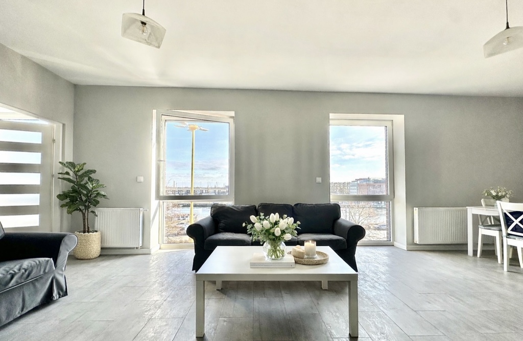Na wynajem przestronny i w pełni umeblowany apartament położony w sercu Szczecin – na Starym Mieście, w nowoczesnej kamienicy z 2013 roku. Budynek jest czteropiętrowy, wyposażony w windę oraz posiada zadbane, współdzielone podwórko.