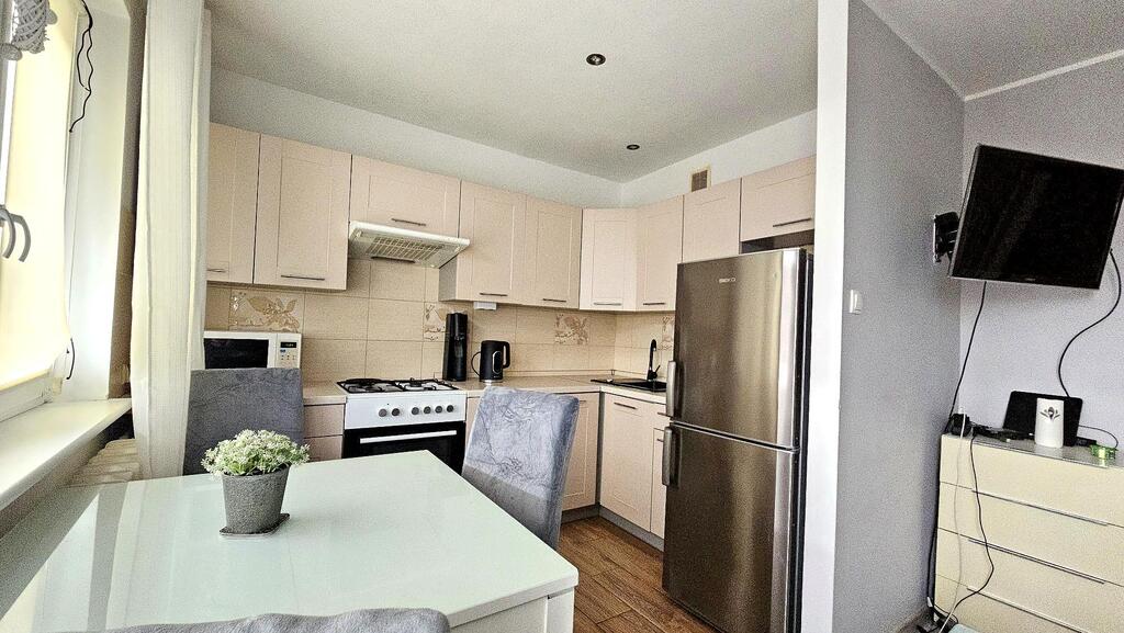 - Salonu z pełnym aneksem kuchennym – wygodna strefa dzienna. Idealna do codziennego życia, pracy zdalnej czy wieczornego odpoczynku. Kuchnia w pełnej zabudowie pozwala na komfortowe gotowanie bez kompromisów.