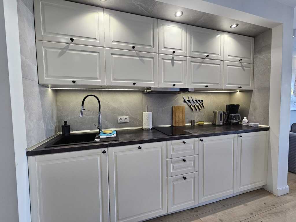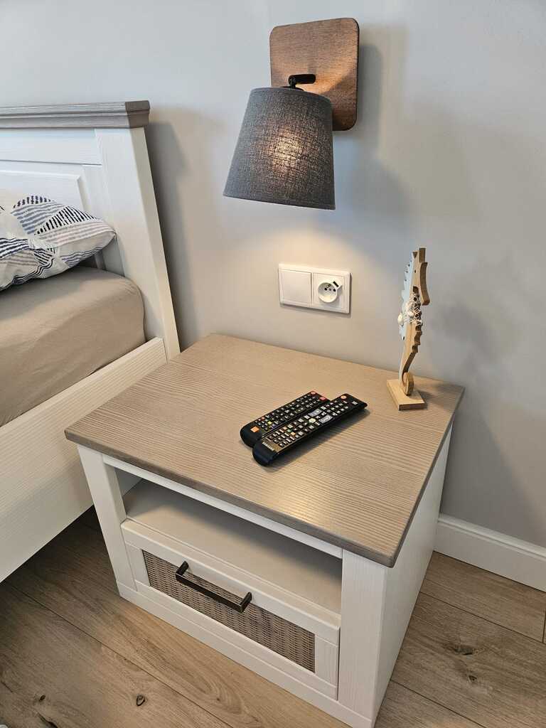 Apartament od strony północno-wschodniej na 2 piętrze składa się z pokoju dziennego z aneksem kuchennym (nowa zabudowa wraz ze sprzętem AGD: lodówko-zamrażarka, mikrofalówka, płyta elektryczna, zmywarka, pralka), sypialni oraz łazienki z wc z funkcją bidetu i prysznicem.