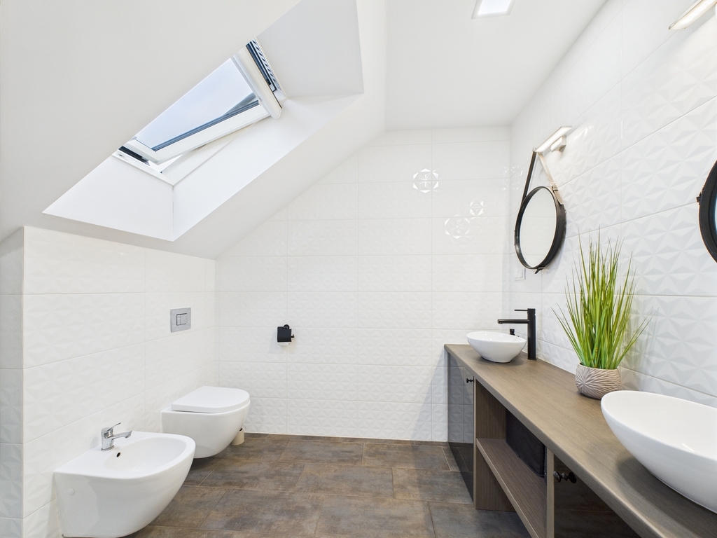 - łazienka z toaletą, prysznicem i oknem