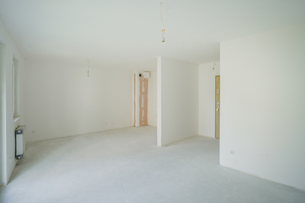 Przemyślany układ przestrzeni – mieszkanie jest wyjątkowo ustawne, a dzięki sprytnemu rozmieszczeniu ścian i okien można je łatwo dostosować do własnych potrzeb, np. wydzielając dodatkowy pokój.