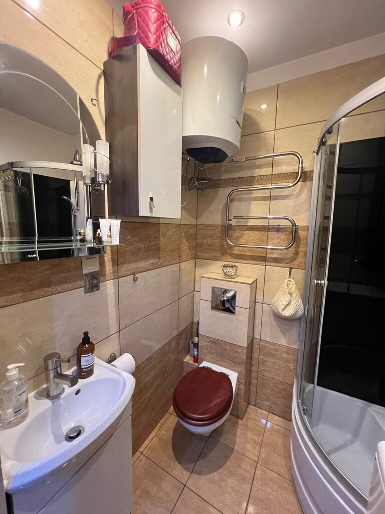 W łazience znajduje się kabina prysznicowa oraz pralka. Standard i informacje techniczne - ogrzewanie elektryczne,
