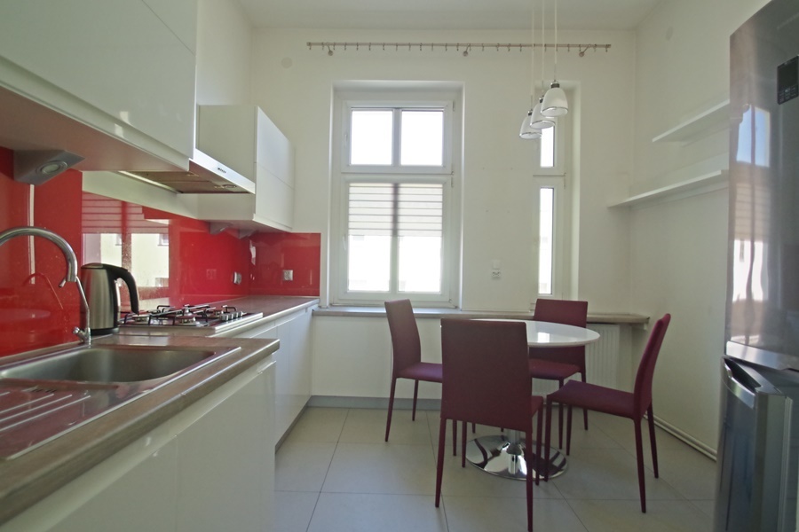 Piękne, duże i jasne mieszkanie na 3 piętrze w kamienicy. Powierzchnia 91.59m2, na którą składają się 3 niezależne pokoje (każdy po około 20 m2), odrębna kuchnia, toaleta, łazienka z wanną i prysznicem, oraz przedpokój z zabudową szaf. Mieszkanie w pełni wyposażone. Łazienka z oknem. Ogrzewanie własne gazowe, czynsz do Zarządcy 950 zł z zaliczkami na zimną wodę. Mieszkanie wyremontowane, kuchnia z zabudową, piękne parkiety, okna PCV, ściany gładzone, wymienione instalacje. Pod budynkiem dużo miejsc parkingowych. Serdecznie zapraszam na prezentację