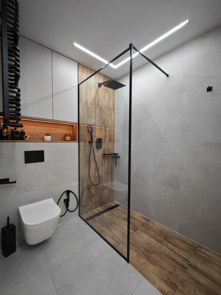 W 2025 roku położono nowe panele w salonie, kuchni i przedpokoju. Ściany w pokojach gładzone i malowane. W kuchni i łazience zostały wymienione instalacje wodno-kanalizacyjna oraz elektryczna (łącznie z podłączeniem w kuchni przewodów do indukcji). W kuchni pozostają nowoczesne meble wykonane na wymiar plus sprzęt AGD, w większości jeszcze na gwarancji (m.in. zmywarka, piekarnik, płyta indukcyjna - wszystko firmy Hisense, lodówka firmy Samsung oraz ozdobny okap). Dodatkowo w kuchni stolik i dwa krzesła oraz jedna ze ścian zabudowana po całości pojemnymi szafkami. W łazience nowoczesna glazura i terakota plus kabina prysznicowa "walk in", umywalka na blacie z szafką z dużymi szufladami, podwieszana muszla, grzejnik drabinkowy oraz zabudowane szafki. W łazience znajduje się również specjalne miejsce na pralkę i suszarkę.
