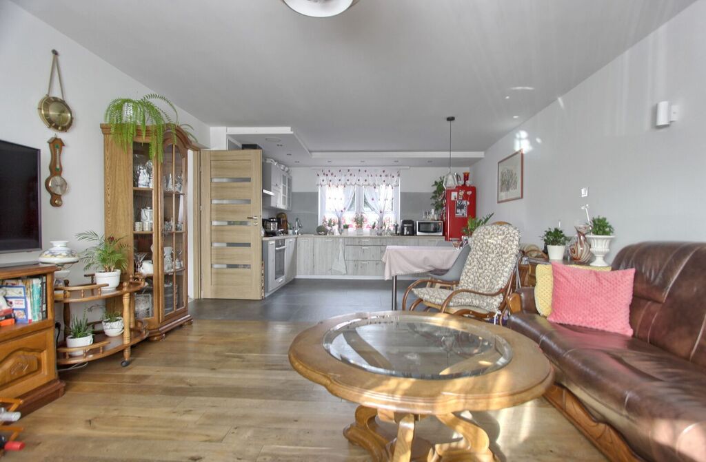 Nieruchomość została funkcjonalnie podzielona na dwa niezależne mieszkania, każde z osobnym wejściem i układem pomieszczeń, co daje komfort i prywatność mieszkańcom. Istnieje również możliwość łatwego połączenia obu części w jeden przestronny dom jednorodzinny – bez konieczności przeprowadzania skomplikowanych prac konstrukcyjnych.