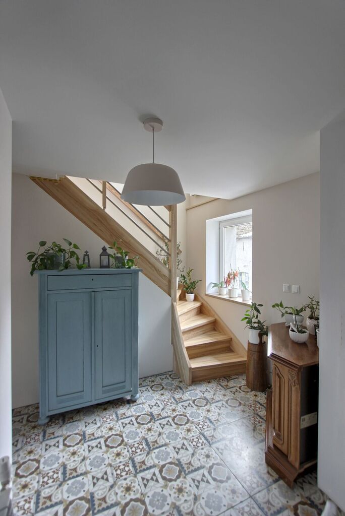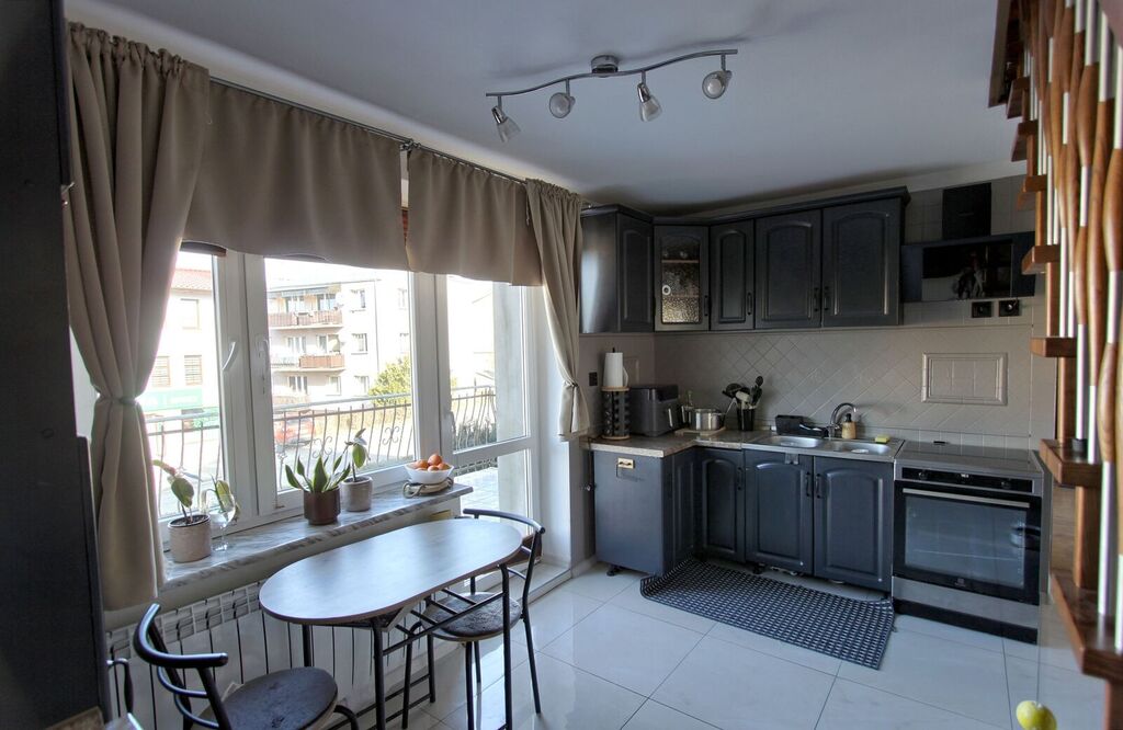 Bezpośrednio za wejściem znajduje się przestronny , widny przedpokój ,a dalej funkcjonalna kuchnia ze schodami na kolejny poziom.