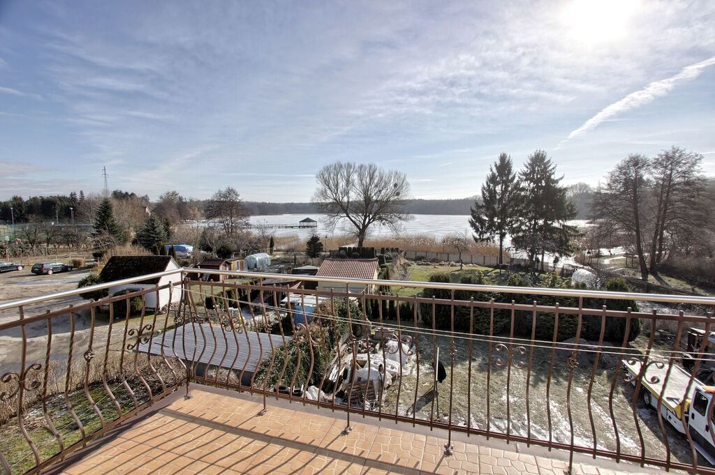 - Bardzo przestronny salon , gdzie istnieje możliwość dostawienia kominka do wybudowanej instalacji kominowej. Salon z wyjściem na obszerny balkon skąd rozpościera się cudowny widok na jezioro