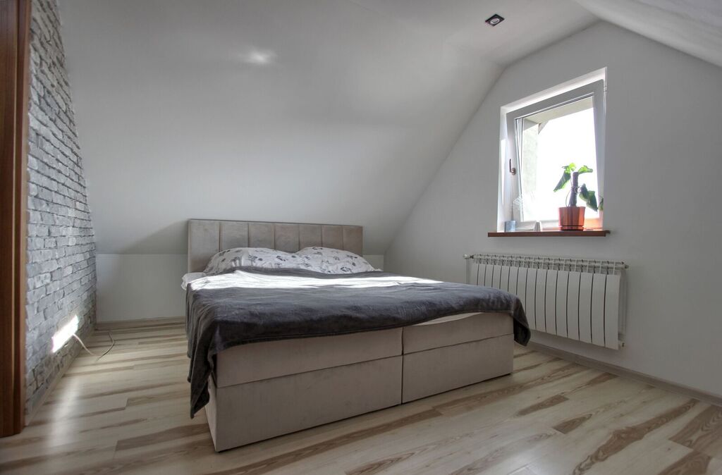 - na poddaszu urządzona została przytulna sypialnia i garderoba.