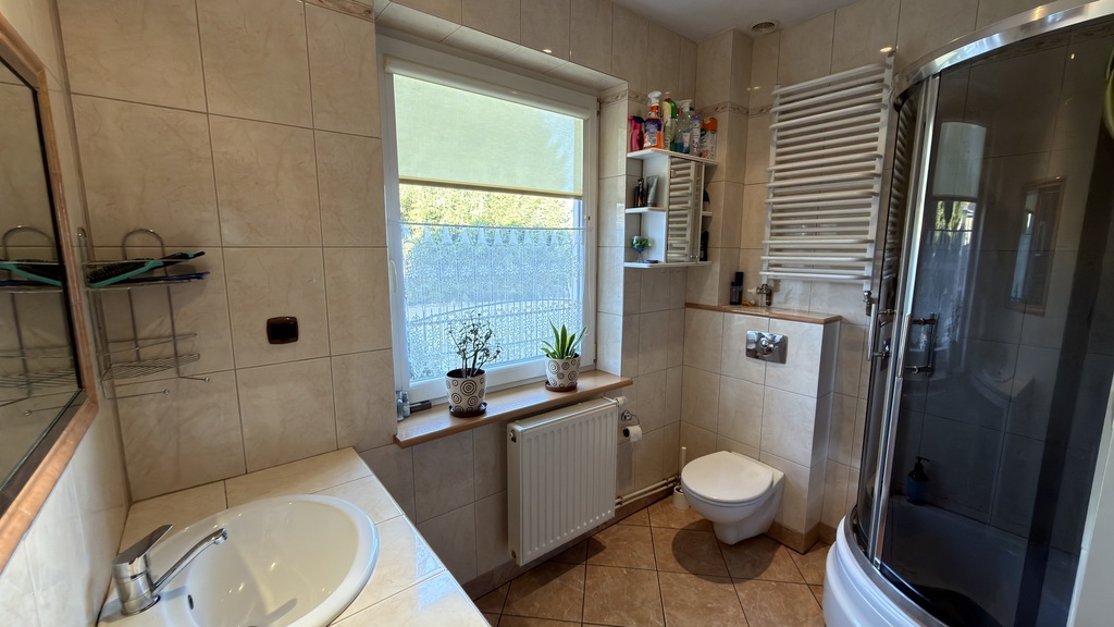 Na parterze zamontowana jest klimatyzacja z rekuperacją, co znacząco poprawia komfort w ciepłe dni.