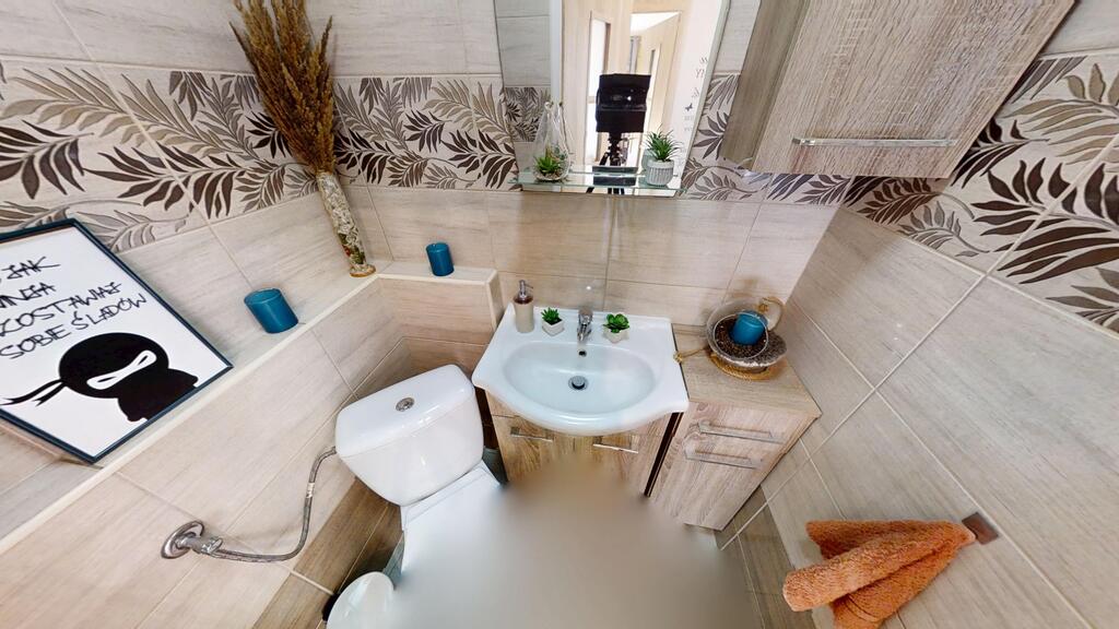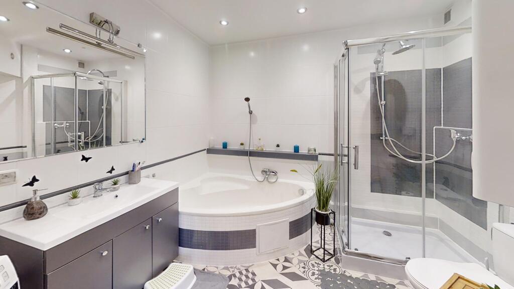 6. Łazienka o pow. ok 7 m2, z wanną, z kabiną prysznicową, umywalką i wc