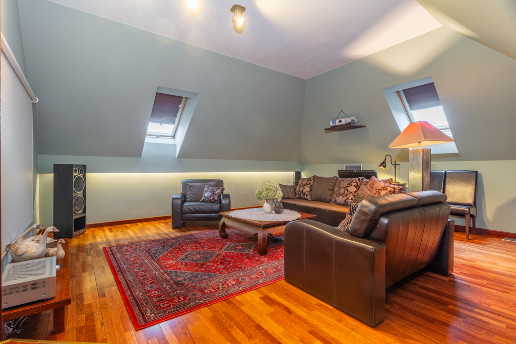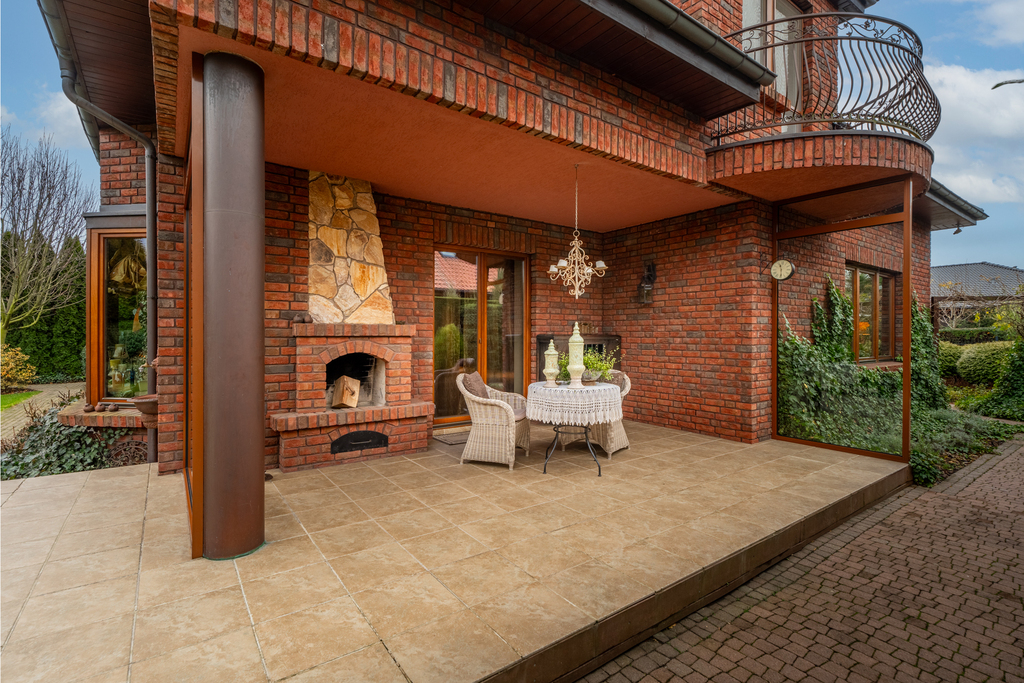 Dodatkowo: nieruchomość wyposażona jest w centralny odkurzacz, centralny filtr wody - zmiękczacz, nawodnienie ogrodu, robot koszący Husqvarna, bramę i ogrodzenie Wiśniowski, kominek zewnętrzny na tarasie oraz strych o powierzchni 25m2.